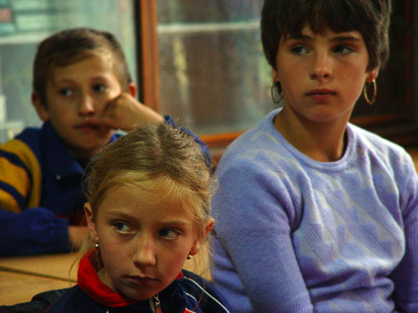 Dialogul purtat cu directorul scolii este īntrerupt de forfota de dincolo de usa. Cātiva īnvatatori īsi fac aparitia īn īncapere cu cataloagele īn māna. Ne dam seama ca a sunat clopotelul, desi nu l-am auzit. Īn pauza, micutii de la Luncsoara, cei care trec dealurile, se strāng īntr-o sala de clasa. Adunati toti la un loc, nu-s mai multi de opt. Ne povestesc ca se trezesc dimineata la cinci sase, se aduna īn grup pentru a fi mai īn siguranta si strabat pustietatea dealurilor si a padurii. La dus fac cam o ora pentru ca e vale, dar la īntors nu fac mai putin de o ora jumatate. Iarna, cānd sunt zapezile mari, e si mai greu pentru ei sa ajunga, pentru ca e si īntuneric. Cel mai mic dintre ei acum a trecut īntr-a doua. „Iarna trebuie sa ne trezim si mai devreme, cu gerurile alea. Trecem pe drum, apoi prin padure si ajungem la scoala obositi”, spune Andreea, īndrazneata. Cu o privire rusinoasa, din spatele clasei, o fetita blonda de vreo 10 ani, riposteaza. „Si odata, eu am auzit lupii urlānd”. „Si nu ti-a fost frica?, am īntrebat-o. „Ba da, mai eram cu Nicoleta si Ionela, colegele mele. Era un ger mare si am crezut ca le e foame si coboara la noi”, adauga fetita.
