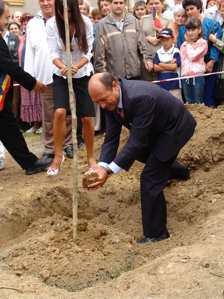 O conjunctura nefericita a facut ca Traian Basescu sa fie primul presedinte post-decembrist care a plantat un gorun în apropierea mormântului lui Avram Iancu si a locului în care, pâna nu demult, se înalta înca gorunul lui Horea. Acesta din urma a fost distrus de o furtuna naprasnica în vara anului trecut. Desi era „întarit” cu un cofrag de ciment, gorunul lui Horea (cel sub care se spune ca liderul rascoalei din 1784 - 1785 a dat semnalul revoltei), vechi de aproape 600 de ani, a ramas si fara ultimele ramuri aflate în viata, rupte de vântul puternic. Simbolul s-a dorit a fi înlocuit de catre autoritatile locale si judetene. Presedintele Consiliului Judetean, Mircea Molot, a declarat atunci ca un astfel de simbol trebuie pastrat, drept pentru care s-a decis plantarea altuia. La festivitatile anuale de la Tebea, din septembrie, Presedintele Basescu a fost si el prezent pentru a participa la comemorarea lui Avram Iancu. Astfel i-a revenit onoarea de a pune în pamânt puietul de gorun menit sa-l înlocuiasca pe cel istoric. În concluzie, gorunul lui Basescu a aparut ca rezultat al unei conjuncturi, deoarece presedintele, la fel ca predecesorii sai post-decembristi, Ion Iliescu si Emil Constantinescu, nu-si manifestase dorinta expresa de a face un astfel de gest. Firav, dar cu Sanse de supravietuire Gorunul lui Basescu se afla la aproximativ 5 metri de sarcofagul de ciment care proteja vechiul gorul al lui Horea si la 15 metri de locul în care este înmormântat Avram Iancu. De-a lungul istoriei, în Cimitirul Eroilor de la Tebea au mai plantat goruni, în semn de recunostinta pentru eroii motilor si ai neamului, Regele Ferdinand, Regele Carol l, Regina Maria. În 1966, când a venit la Tebea, Nicolae Ceausescu a tinut neaparat sa faca acelasi lucru. A pus un puiet de gorun la capatâiul mormântului lui Iancu, dar acesta nu a prins radacini. În mare secret, lucratorii silvici au plantat altul, care a avut aceeasi soarta. Abia al treilea puiet s-a prins în pamânt. El nu a apucat însa sa ajunga la maturitate. În decembrie 1989, localnicii revoltati din Brad, oras situat la mai putin de 10 kilometri, l-au smuls din pamânt, l-au dus în fata fostului Consiliu Popular, l-au taiat si i-au dat foc. Impresionati Si nu prea |